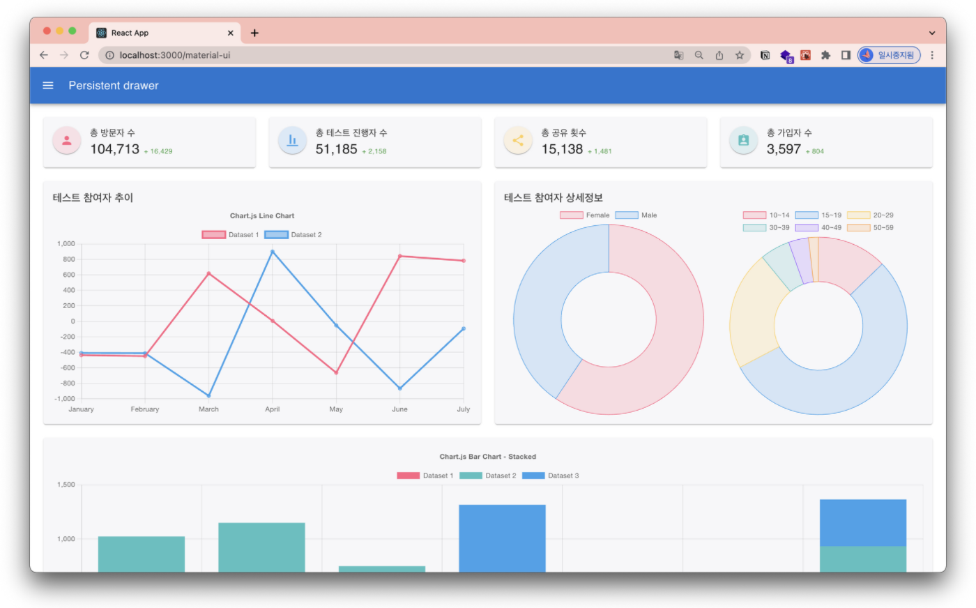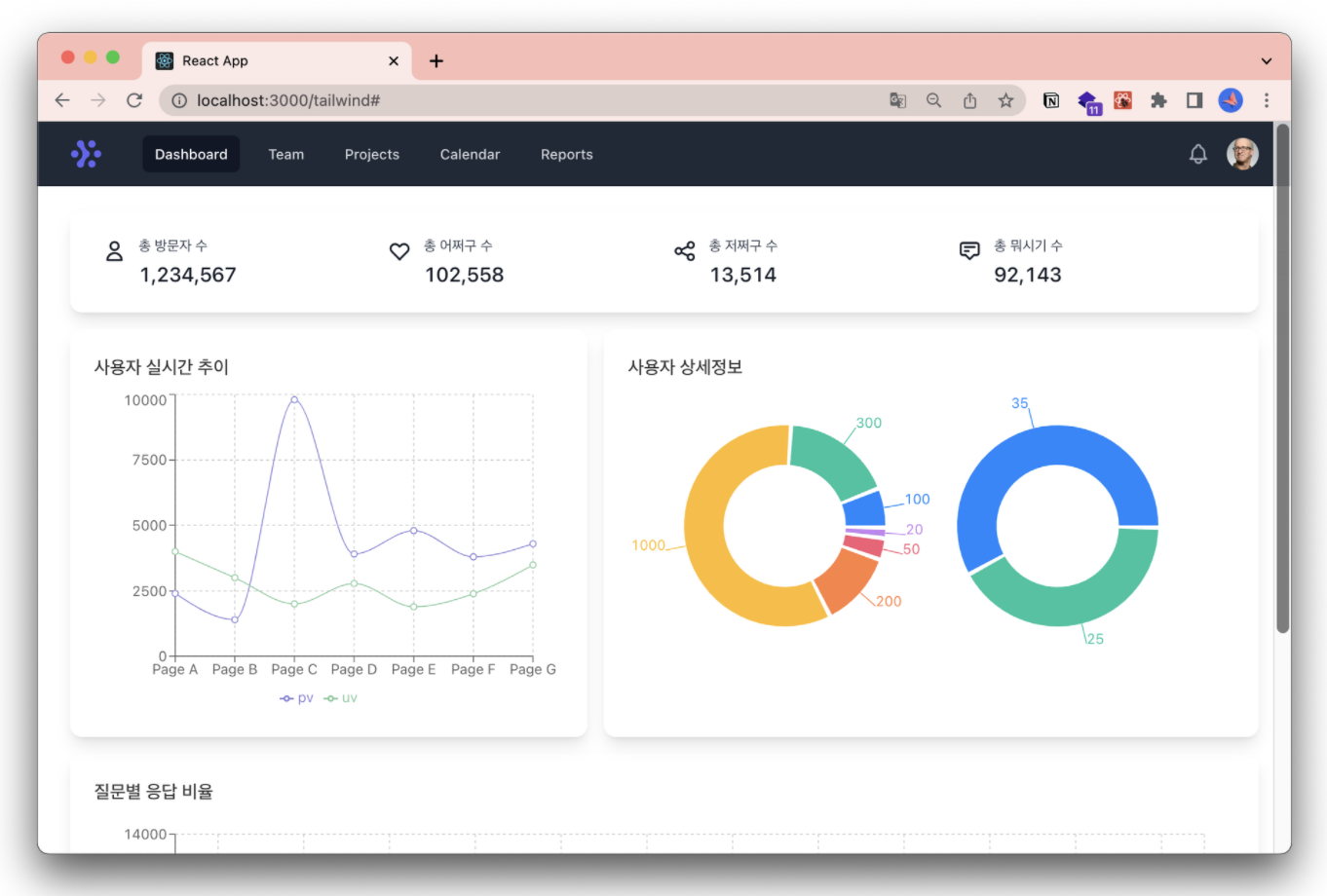 - Charts의 경우 예제 코드가 리액트 기준으로 작성되어 있어 어떻게 사용해야 할 지 쉽게 알 수 있었다.