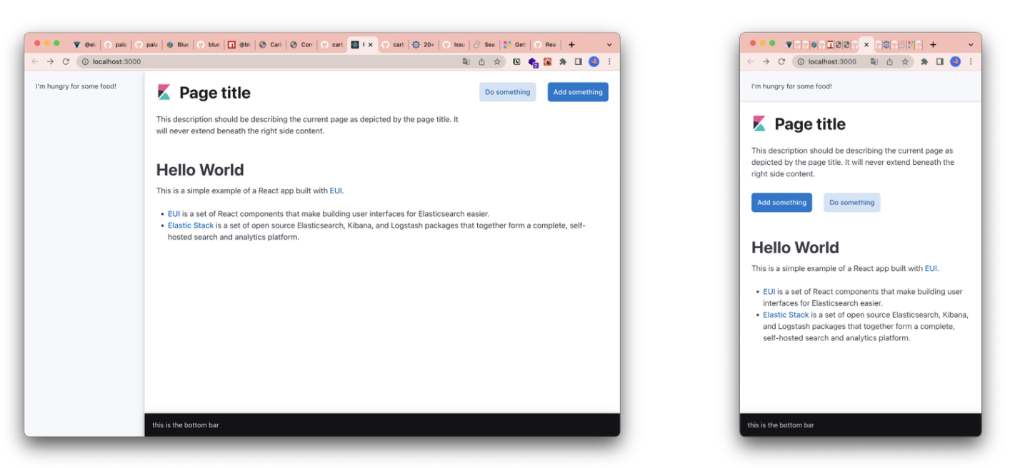 - 기본적으로 원활한 반응형을 지원한다. 위의 이미지는 EUI에서 제공한 컴포넌트로만 반응형 관련 설정 하나도 없이 만든 페이지다.